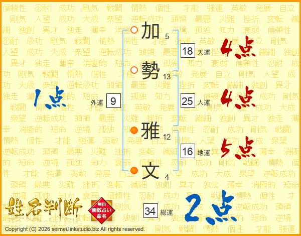 加勢雅文さんの総運は34画の2点!
