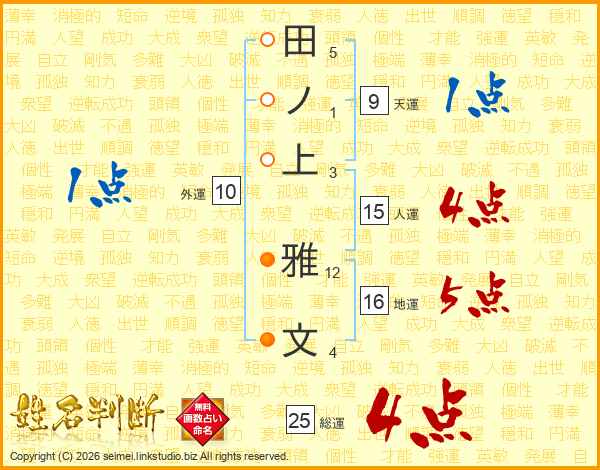 田ノ上雅文さんの人運は15画の4点!