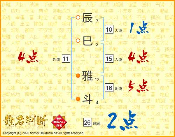 辰(7画)巳(3画) 雅(12画)斗(4画)