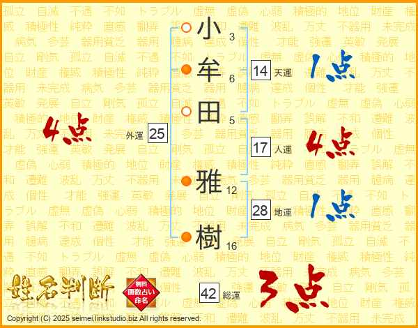 小牟田雅樹さんの天運は14画の1点!