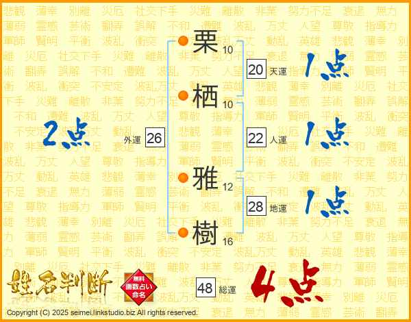 栗(10画)栖(10画) 雅(12画)樹(16画)