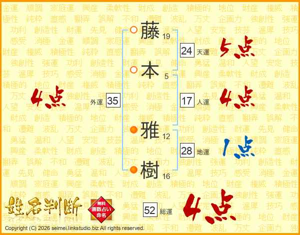 藤本雅樹さんの総運は52画の4点!