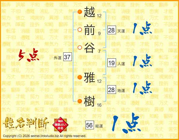 越前谷雅樹さんの人運は19画の1点!