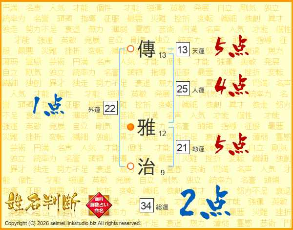 傳雅治さんの総運は34画の2点!