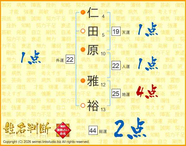 仁田原雅裕さんの地運は25画の4点!