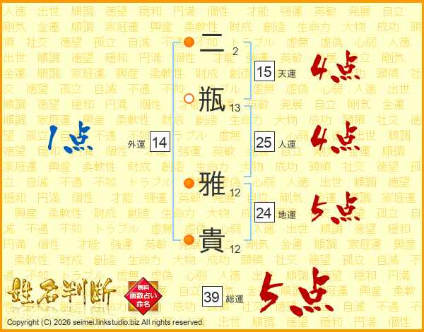 二瓶雅貴さんの総運は39画の5点!