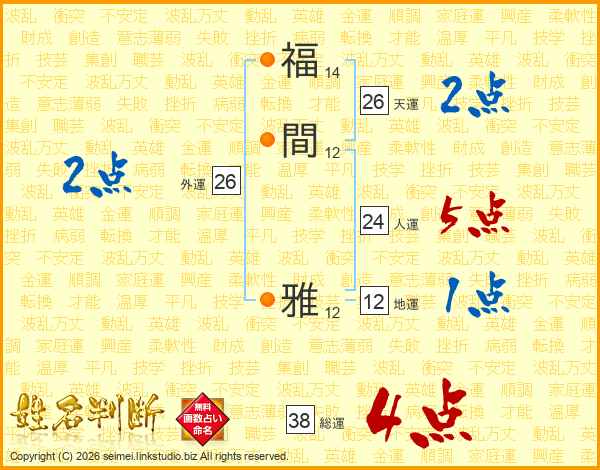 福間雅さんの総運は38画の4点!