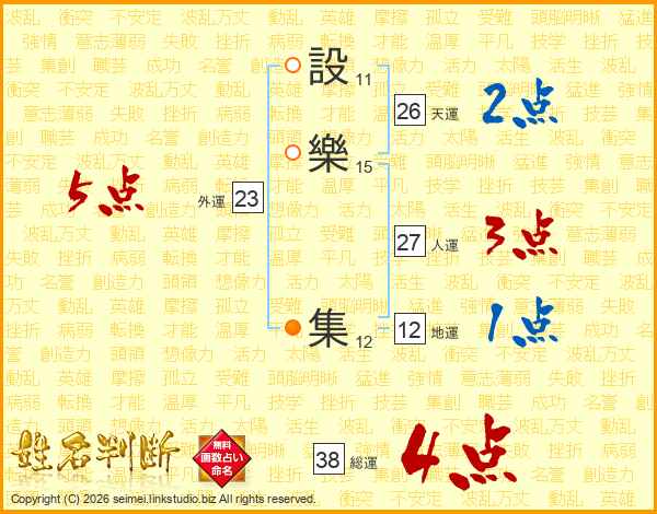 設樂集さんの総運は38画の4点!