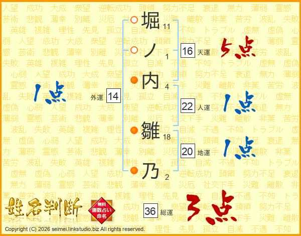 堀(11画)ノ(1画)内(4画) 雛(18画)乃(2画)