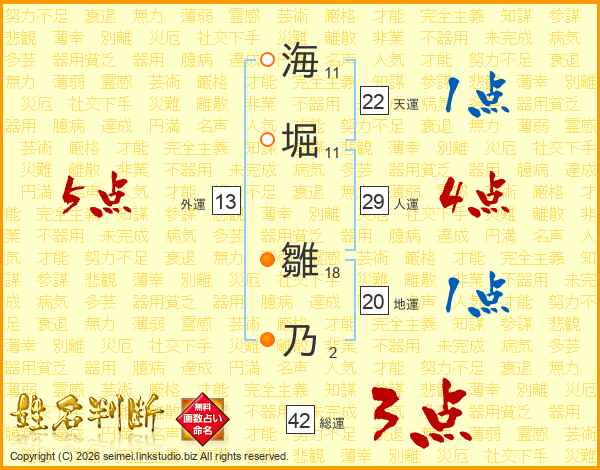 海堀雛乃さんの外運は13画の5点!