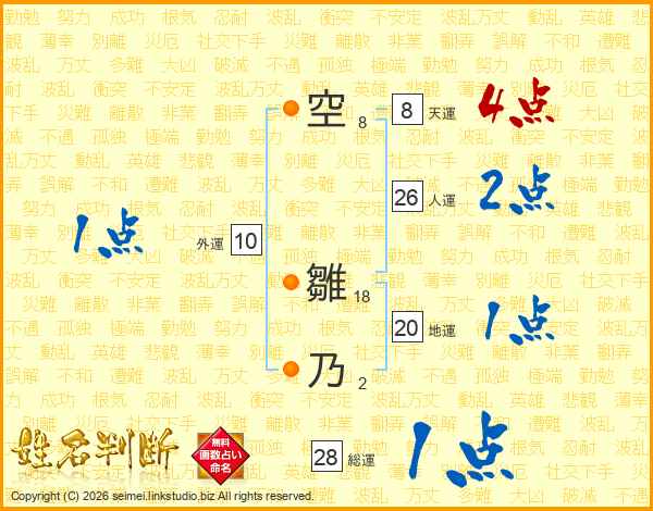 空(8画) 雛(18画)乃(2画)