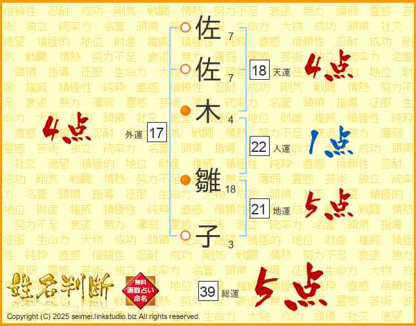 佐(7画)佐(7画)木(4画) 雛(18画)子(3画)
