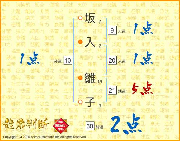 坂入雛子さんの地運は21画の5点!