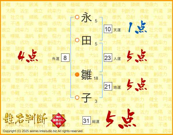 永田雛子さんの総運は31画の5点!