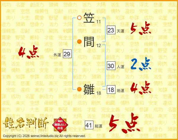 笠間雛さんの外運は29画の4点!