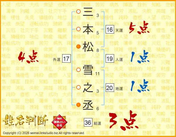 三本松雪之丞さんの外運は17画の4点!
