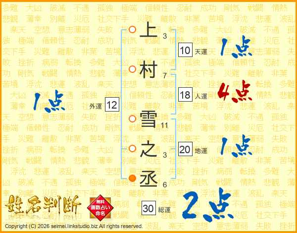 上村雪之丞さんの総運は30画の2点!