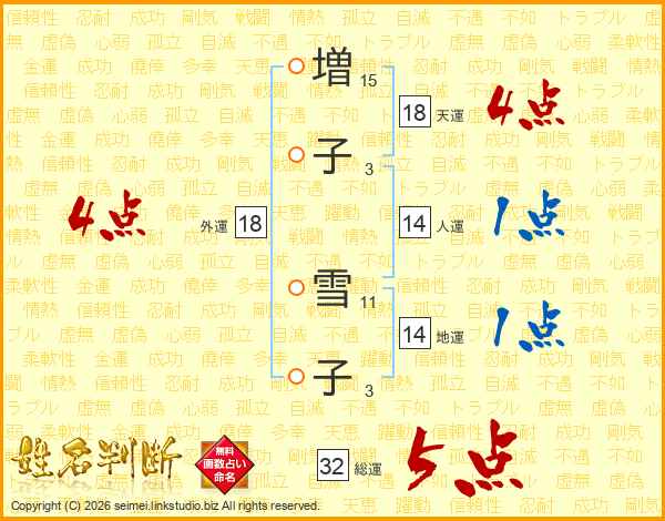 増子雪子さんの外運は18画の4点!