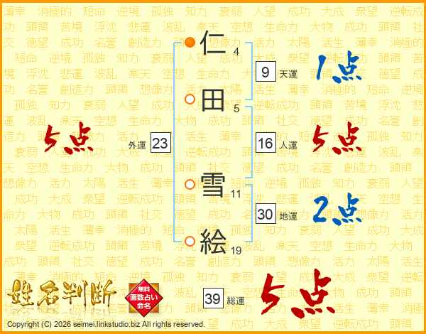 仁田雪絵さんの総運は39画の5点!
