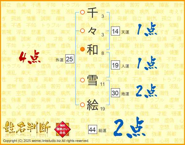 千(3画)々(3画)和(8画) 雪(11画)絵(19画)