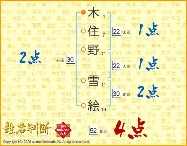 木住野雪絵さんの総運は52画の4点!