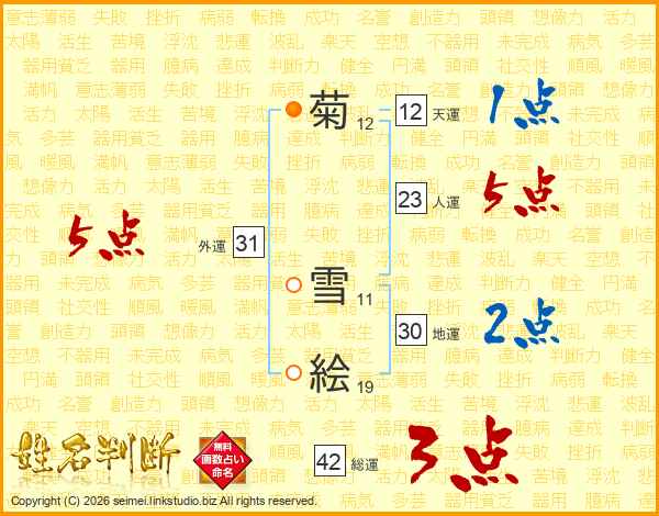 菊雪絵さんの地運は30画の2点!
