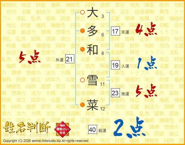 大多和雪菜さんの天運は17画の4点!