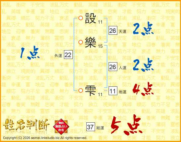 設樂雫さんの総運は37画の5点!