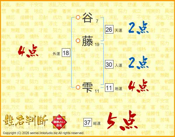 谷藤雫さんの総運は37画の5点!