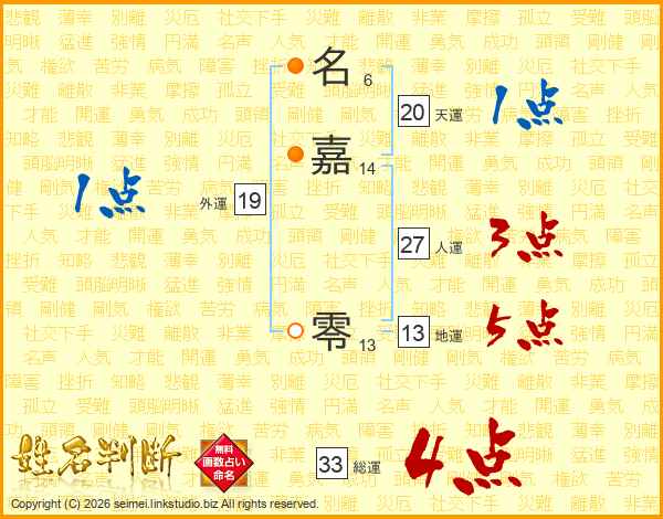 名嘉零さんの総運は33画の4点!