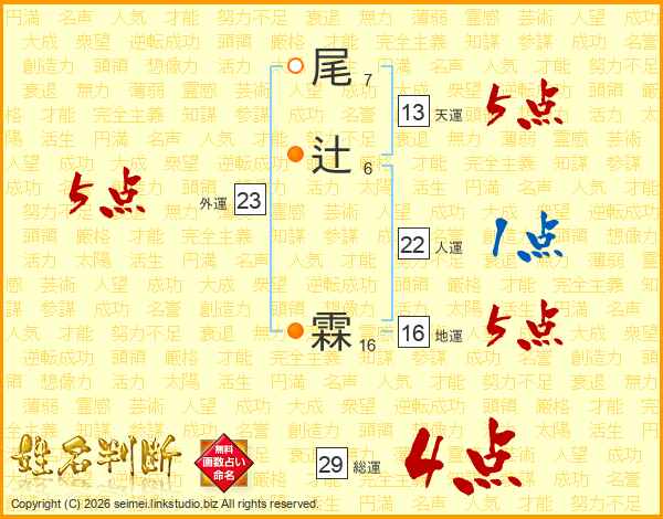 尾辻霖さんの総運は29画の4点!