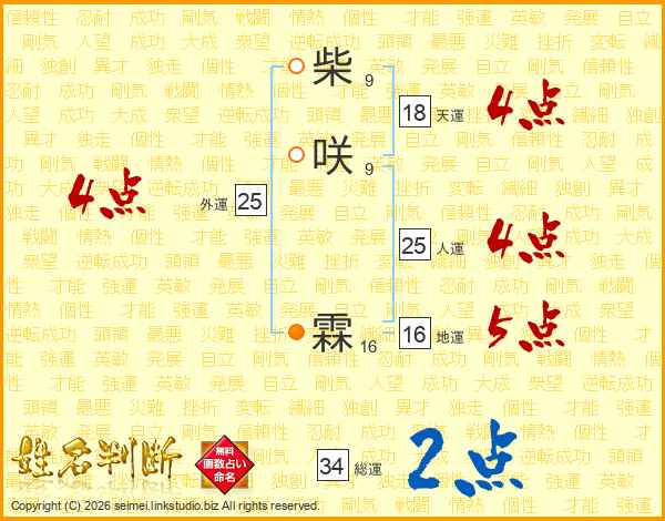 柴(9画)咲(9画) 霖(16画)