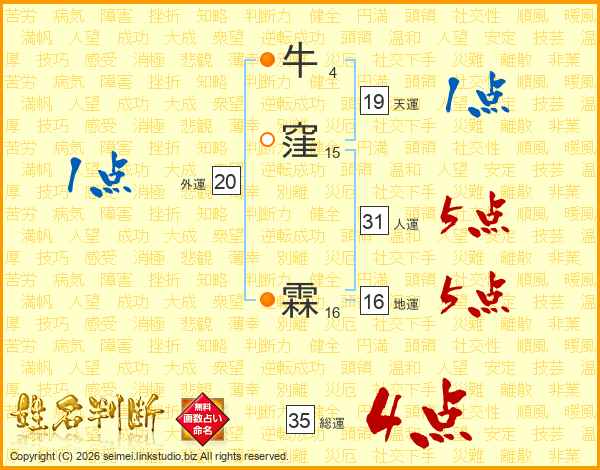 牛窪霖さんの総運は35画の4点!