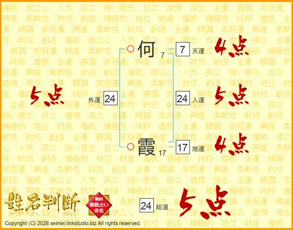 何霞さんの総運は24画の5点!