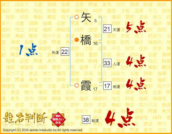 矢橋霞さんの総運は38画の4点!