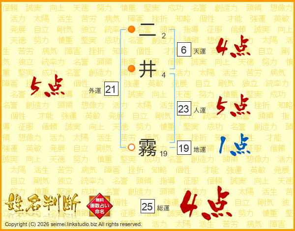 二井霧さんの総運は25画の4点!