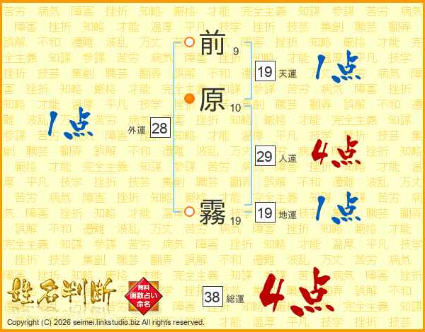前原霧さんの総運は38画の4点!