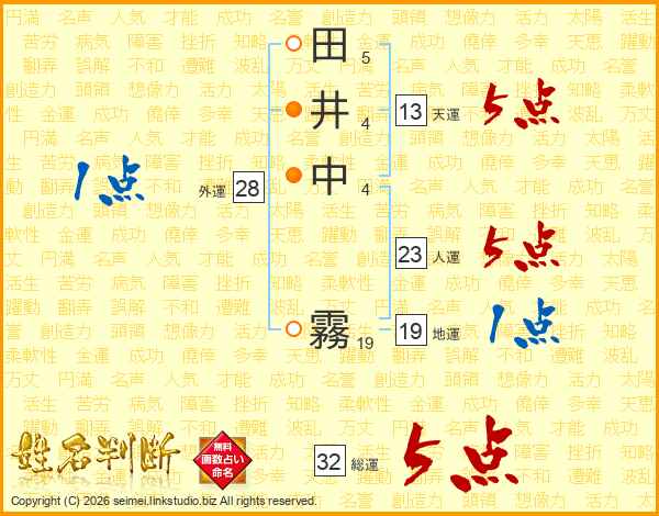 田井中霧さんの総運は32画の5点!