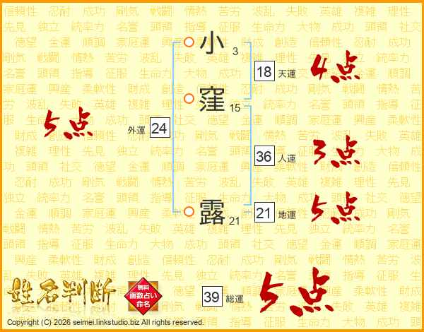 小窪露さんの総運は39画の5点