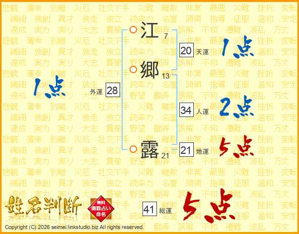 江郷露さんの総運は41画の5点!