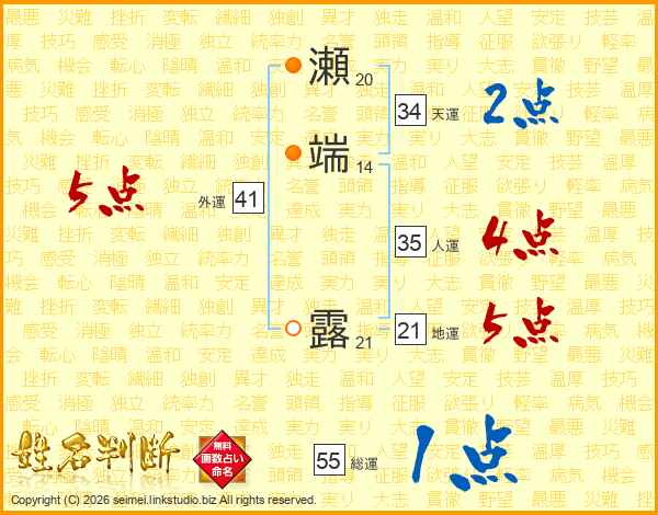 瀬端露さんの地運は21画の5点