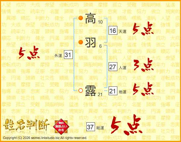 高羽露さんの総運は37画の5点!