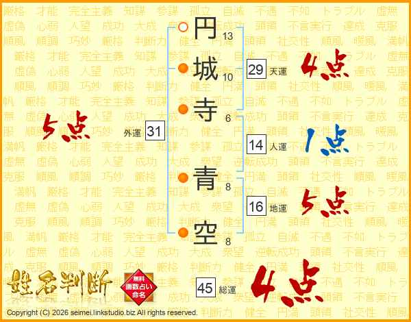 円(13画)城(10画)寺(6画) 青(8画)空(8画)