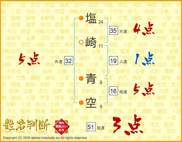 塩崎青空さんの総運は51画の3点!