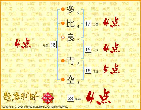 多(6画)比(4画)良(7画) 青(8画)空(8画)