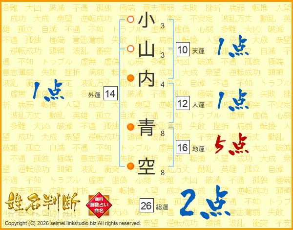 小山内青空さんの総運は26画の2点!