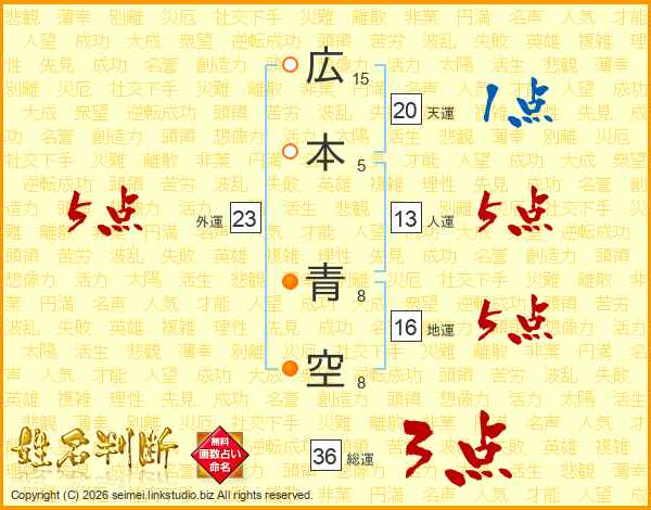 広本青空さんの人運は13画の5点!