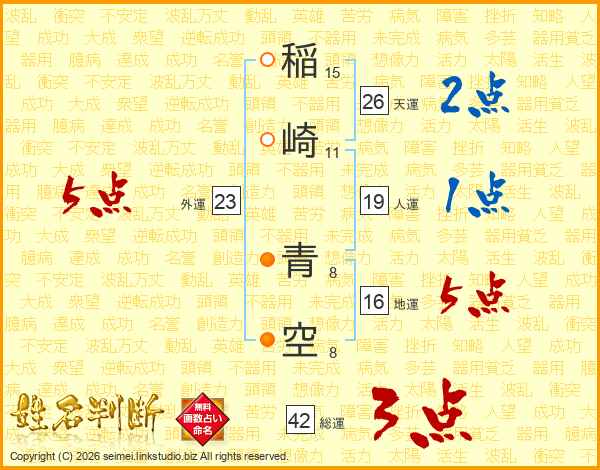 稲崎青空さんの天運は26画の2点!