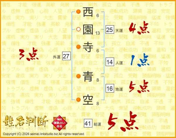 西園寺青空さんの総運は41画の5点!