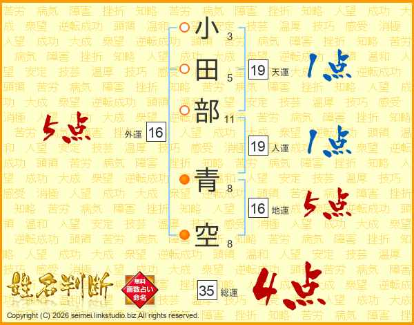小田部青空さんの総運は35画の4点!